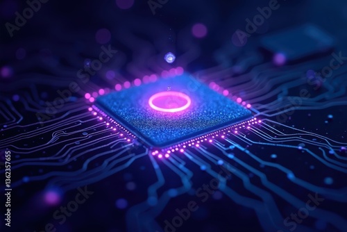 Abstract Computing Processor with Vibrant Circuit Details and Glow