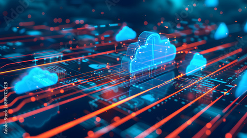 Abstract concept of cloud computing and data transfer