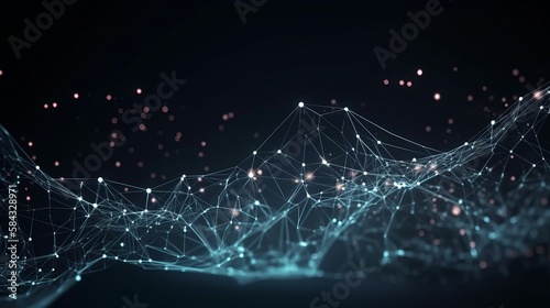 Abstract connected dots and lines network background. Technology network background concept. Global network, big data and cybersecurity. Transfer and storage of data sets, blockchain.