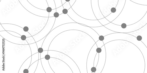 Abstract connecting dots and circles. Pattern of multiple overlapping circles and solid grey dots on a white background. Arcs and circular outlines with geometric grid with a random scatter of dots.