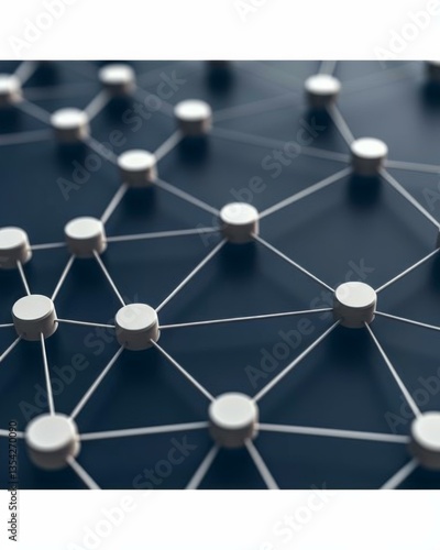 Abstract Connection Network with White Nodes and Lines on Dark Blue Backdrop