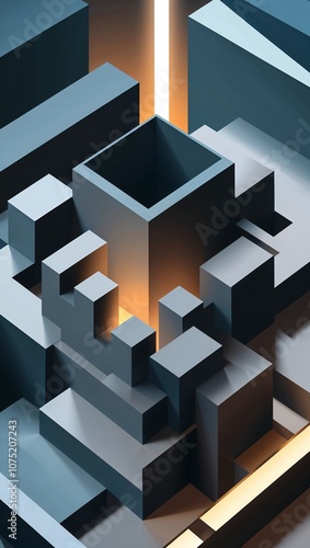 Abstract cubic maze with shifting shadows and light directions