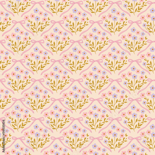 abstract cute ditsy flower texture print pattern with pink ribbon