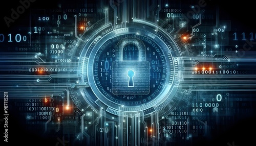 Abstract cyber security concept with key and binary code.
