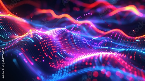 Abstract cybernetic waves with neon lights and dynamic motion, evoking the feel of advanced digital systems and innovation