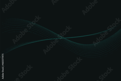 Abstract dark background featuring teal wavy lines with small dots creating a flowing pattern design