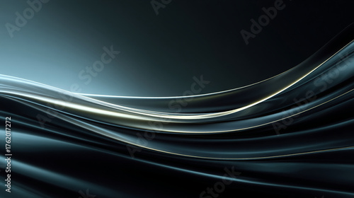 Abstract dark background with flowing metallic lines and subtle light reflections design