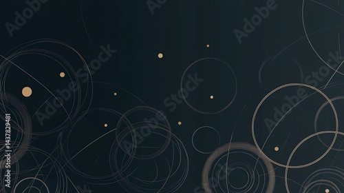 Abstract Dark Background with Golden Circles and Lines Design Element