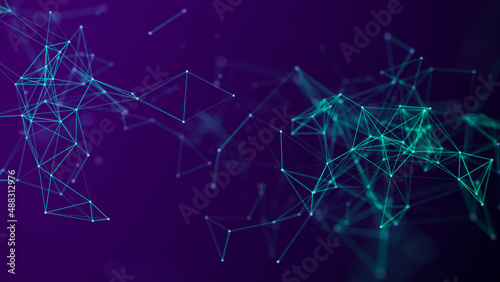 Abstract dark background with moving lines and dots. The concept of big data, technology and science. Network connection. 3d rendering.