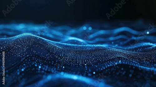 Abstract dark blue technical background. Technology background with line and dot particles surface
