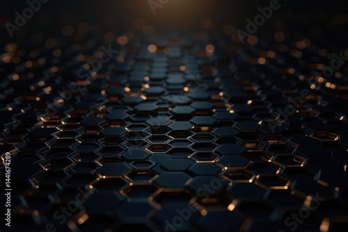 Abstract Dark Hexagon Pattern A Futuristic Technological Background Featuring Interlocking Geometric Shapes with Subtle Glowing Edges