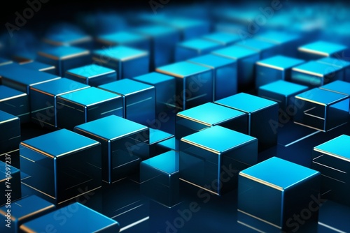 abstract dark mosaic background with many blue block shapes, in the style of 3D rendering, digital art