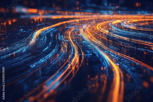 Abstract Data Stream Flowing with Blue and Orange Digital Light