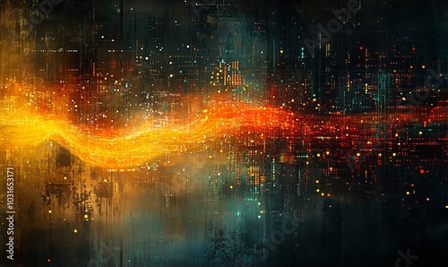 Abstract data streams transformed into intricate patterns of encrypted symbols, emphasizing the importance of encryption in safeguarding sensitive, Generative AI