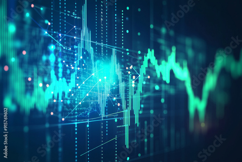 Abstract Data Visualization with Green Lines on Dark Blue Background