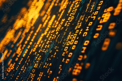 Abstract Data Visualization with Lines of Glowing Numeric Code in Dark Background