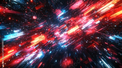 Abstract Dazzling red/blue rectangles in dark space, like stars