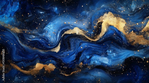 Abstract Deep Blue and Gold Swirling Cosmic Background Texture