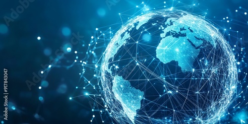 Abstract depiction of a globe wrapped in a network of glowing lines, illustrating the seamless connection and integration of global digital and communication networks