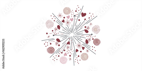 Abstract design with radiating lines hearts circles and stars on a white background pattern vector