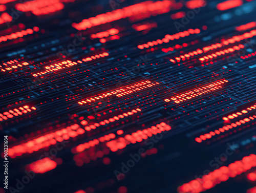 Abstract digital background featuring illuminated red lines on a dark surface, representing data flow and technology.