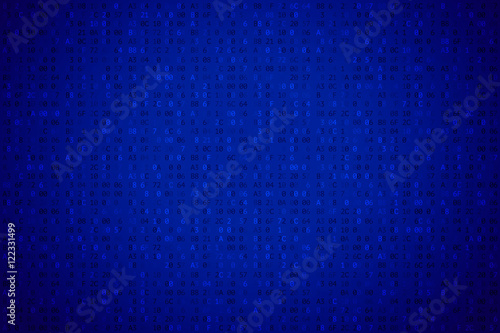 Abstract digital background. Machine code. Hexadecimal code. Random digits and letters colored illustration.