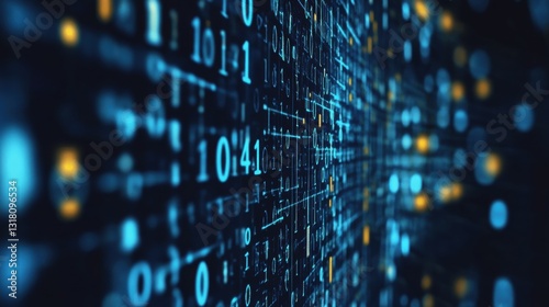 Abstract Digital Background of Glowing Binary Code Flowing in a Network of Data Connections for Technology, Cybersecurity, and Data Analysis Themes