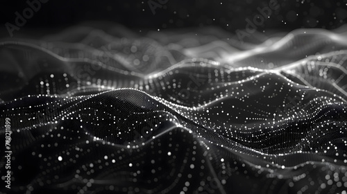 Abstract digital background. Space filled with polygons and dots. 3D wave