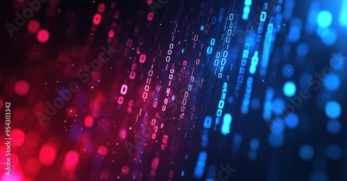 Abstract Digital Background with Binary Code and Glowing Lights