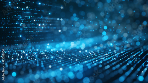 Abstract digital background with binary code streams in a futuristic setting, showcasing technology and data flow.