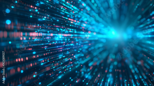 Abstract digital background with binary code streams in a futuristic setting, showcasing technology and data flow.