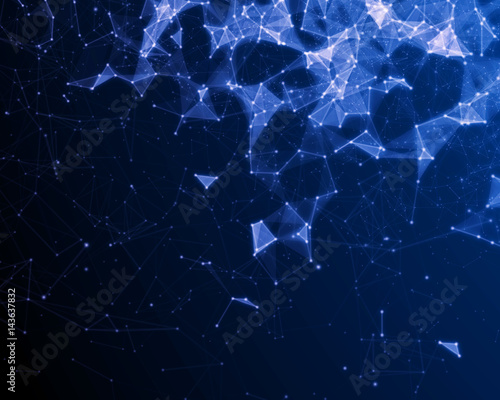 Abstract digital background with blue cybernetic particles.
