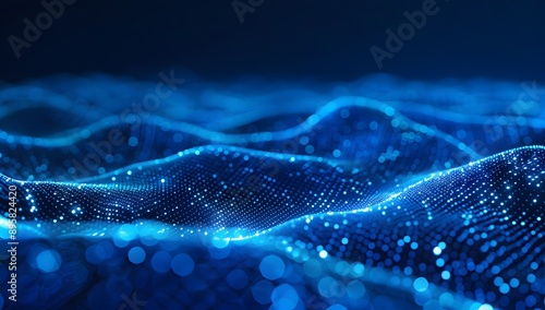 Abstract digital background with blue glowing dots forming wave patterns on a dark gradient, representing data flow and technology waves. Abstract digital background with blue glowing dots forming wav