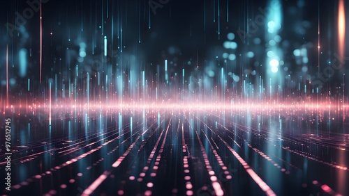 Abstract digital background with glowing lines and particles, representing data flow or network connections.
