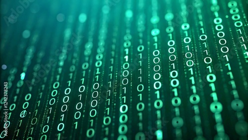 Abstract Digital Background with Green Binary Code Flowing in a Futuristic Environment