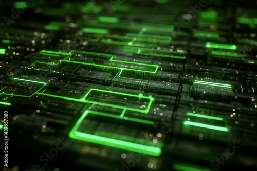Abstract Digital Background with Green Neon Lines and Modern Data Visuals for Technology Themes and Creative Projects