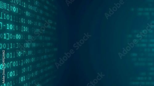 Abstract Digital Background with Teal Binary Code Stream Creating a Futuristic Technology Environment for Data and Innovation Themes