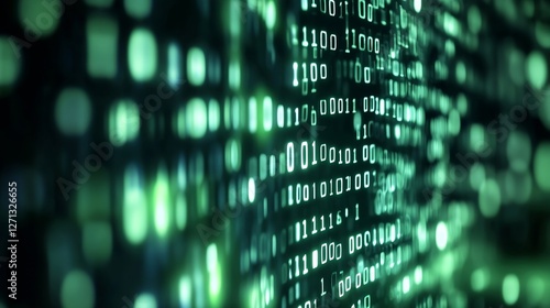 Abstract digital binary code background with glowing green data elements in motion : Generative AI