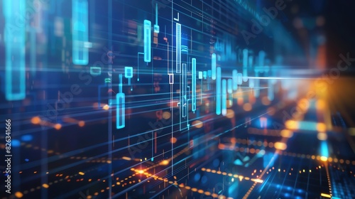 Abstract digital blue background featuring dynamic lines, data visualization, and glowing elements, representing technology and futuristic concepts.