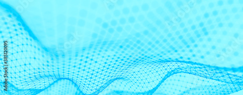 Abstract digital blue background. Network connection structure. Big data. Futuristic wave. 3D rendering.