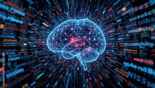 Abstract Digital Brain Network with Data Streams and Light Trails