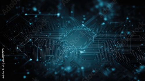 Abstract digital circuit design with glowing elements, representing technology and data flow.
