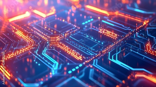 Abstract Digital Circuitry - Glowing Blue & Orange Lines