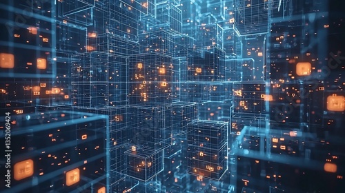Abstract Digital Cityscape Glowing Cubes Network Technology Background