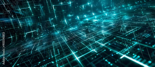 Abstract digital cityscape with glowing lines.