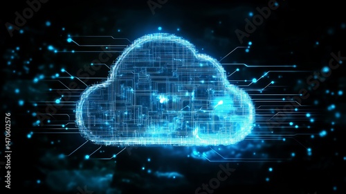 Abstract digital cloud computing network technology data server web blue cyber lines online future