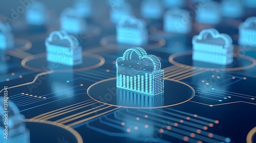 Abstract Digital Cloud Technology Concept with Data Visualization and Network Connections in Futuristic Style