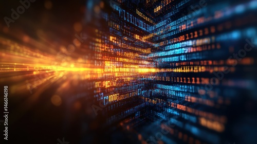 Abstract digital code background. Binary data streams. Dynamic glowing matrix