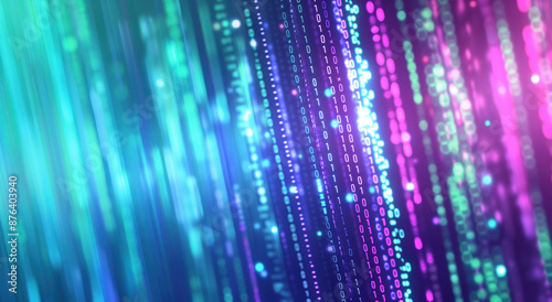 Abstract digital code background. Abstract background featuring blue and pink digital code with binary numbers and bokeh effect, representing technology and data