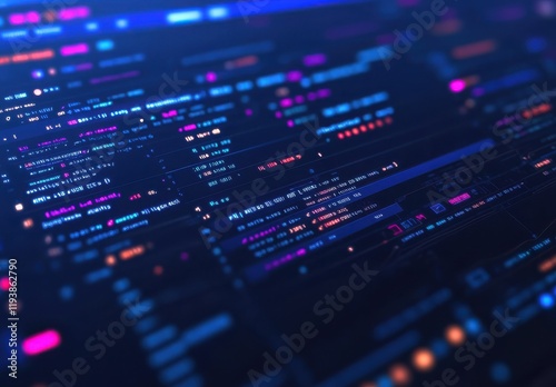 Abstract Digital Code Background with Colorful Programming Language Syntax and Data Display for Tech and Software Design Projects
